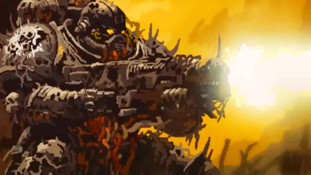 As you can likely tell from the image above, the shot in question did look very much like a Chaos Space Marine from Warhammer 40,000. In fact, I think if anyone with even a passing knowledge of Games Workshop’s tabletop series would have assumed that it was 40K art if it was shown out of context.