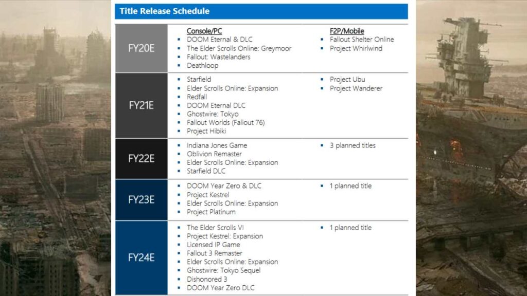 In the leaked documents, Oblivion Remastered was scheduled to release in FY22, but was pushed to 2025 as many projects were heavily delayed due to COVID. (The listโs release schedule started in 2020.) That same list put Fallout 3 Remastered in 2024 which could mean the project wonโt release until 2027 at the earliest.