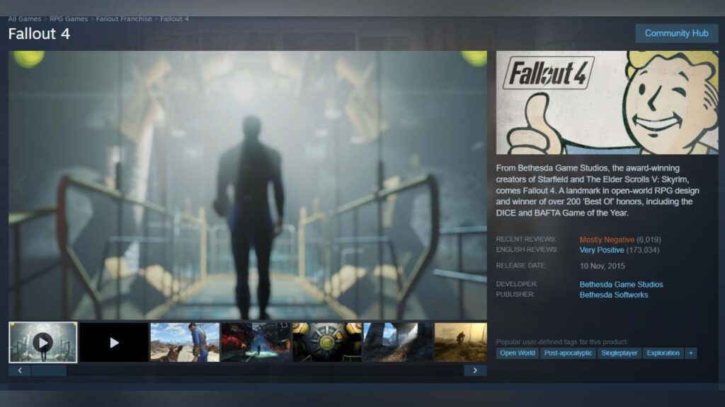 In response to this, gamers on Steam have left scathing negative reviews to warn others against buying Fallout 4 Anniversary Edition. While the game has gone between Mixed and Positve reception on Steam since its 2015 launch, the ten-year-old RPG is now sitting at a “Mostly Negative” rating on Steam with just 33% of reviews over the past 30 days showing a positive rating.